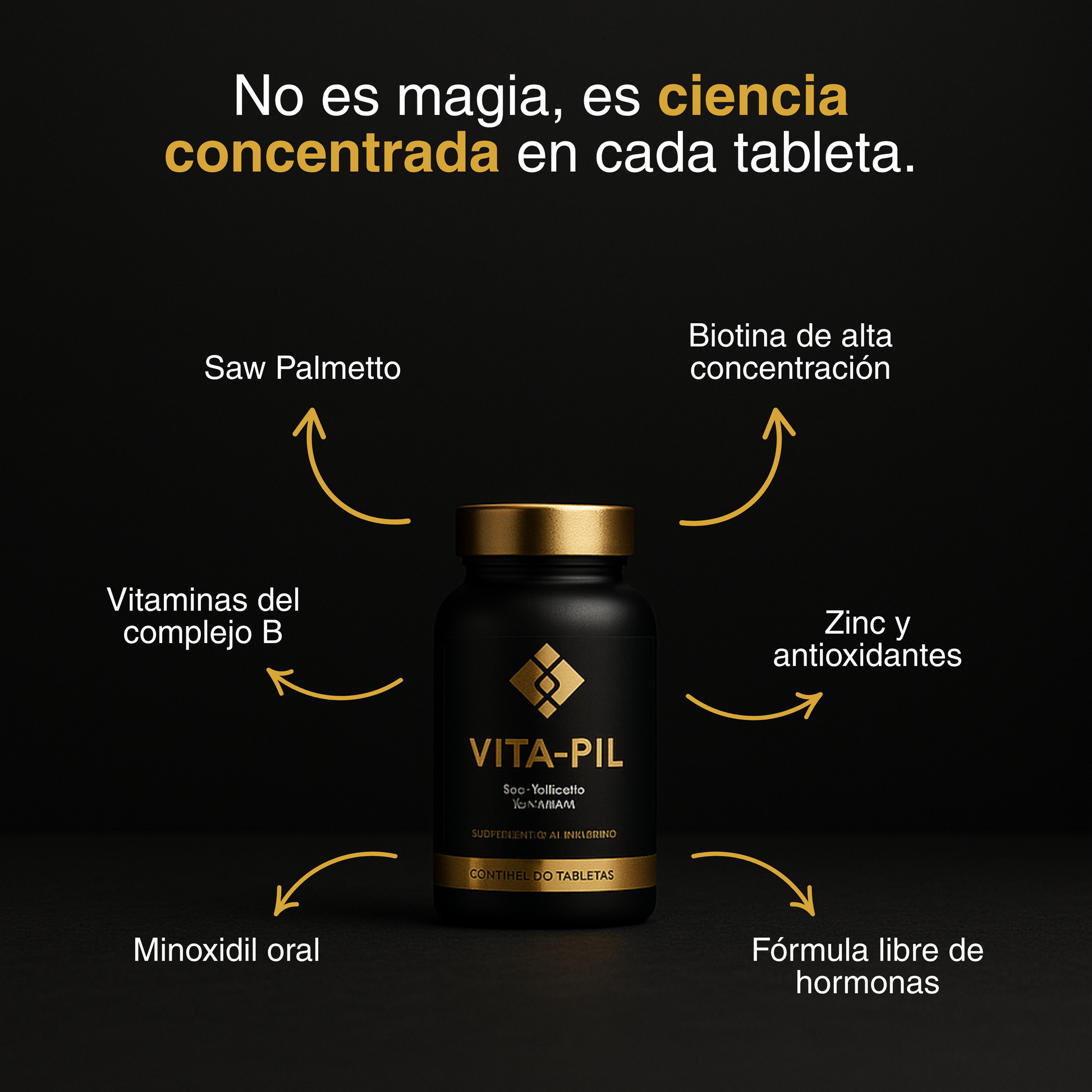 VITA-PIL no es otro suplemento más: es una fórmula respaldada por miles de personas que frenaron la caída capilar y recuperaron su confianza en tan solo 90 días. Gracias a su combinación única de Saw Palmetto, Biotina y Minoxidil, actúa desde la raíz para detener la pérdida, estimular el crecimiento y devolverle fuerza y volumen a tu cabello. Si estás buscando resultados reales, este es el momento de actuar.